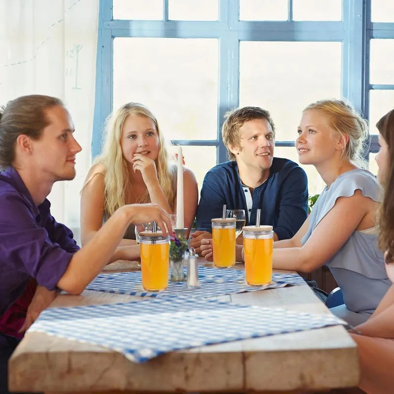 DecorBites™ Glass Boba Smoothie Cup with Bamboo Lid & Stainless Steel Straw