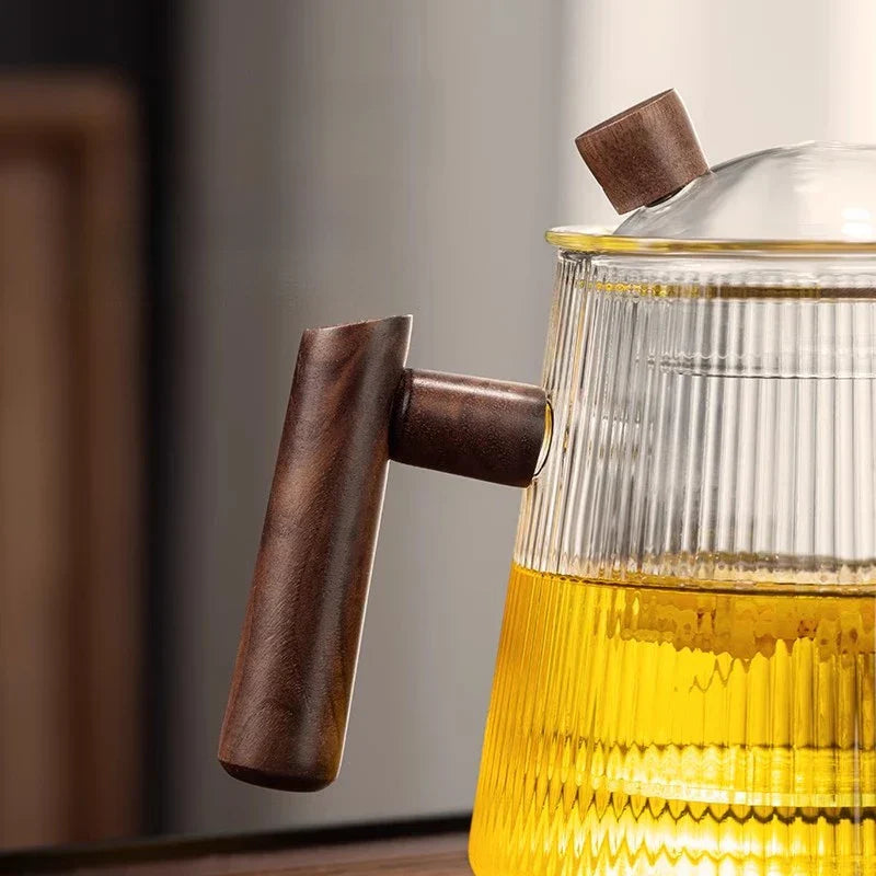 DecorBites™ Glass Teapot 900ML with Wooden Handle for Puer Kung Fu Tea