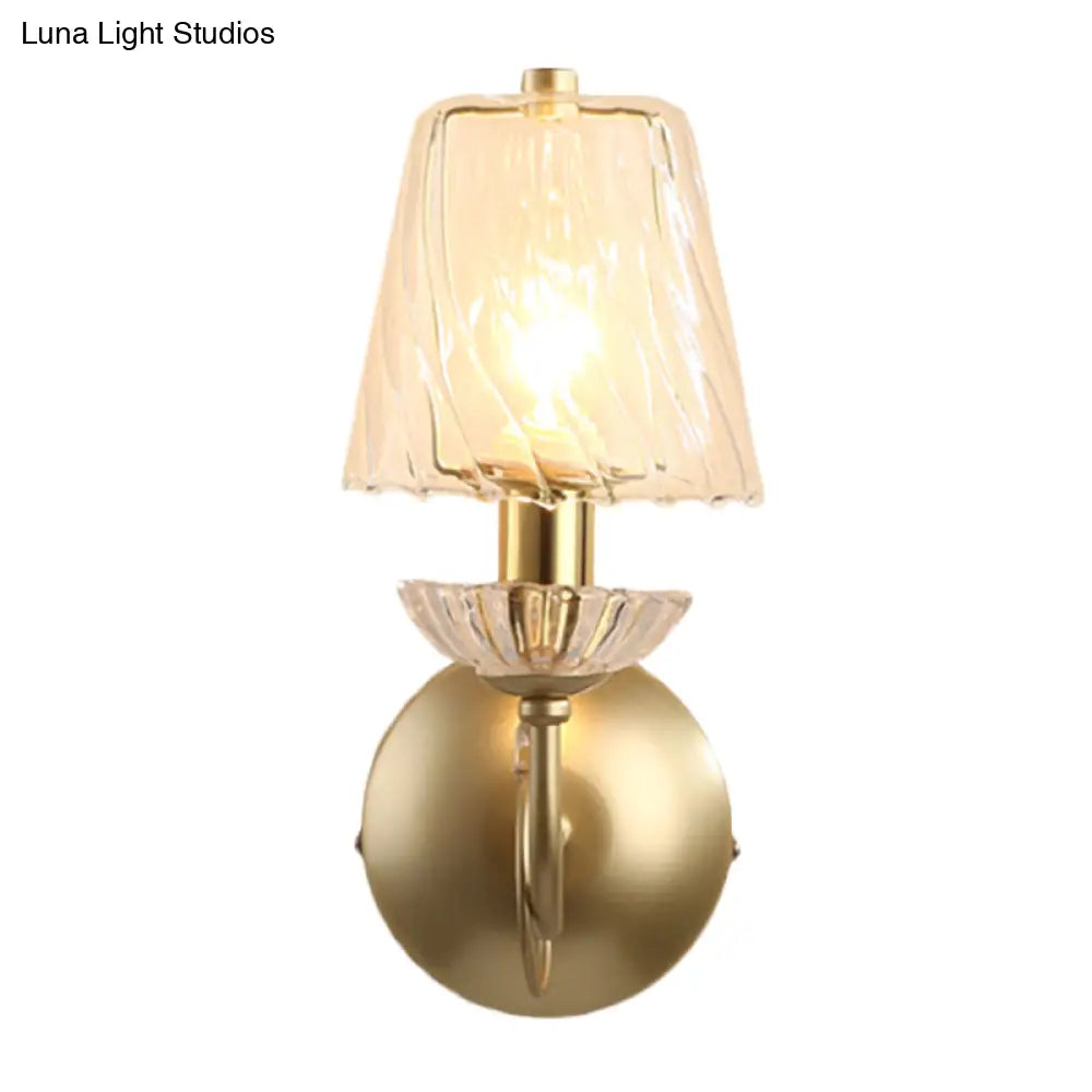 DecorBites™ Gold Conical Sconce with Clear Twisted Glass Shade - Minimalist Single Bulb Wall Light