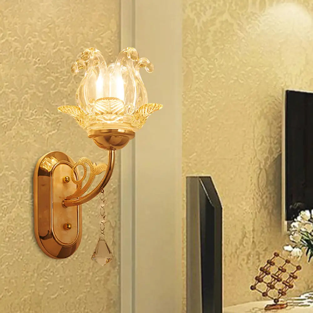 DecorBites™ Gold Crystal Wall Lamp with Curved Arm - Simplicity Blossom 1/2-Light Wall Fixture