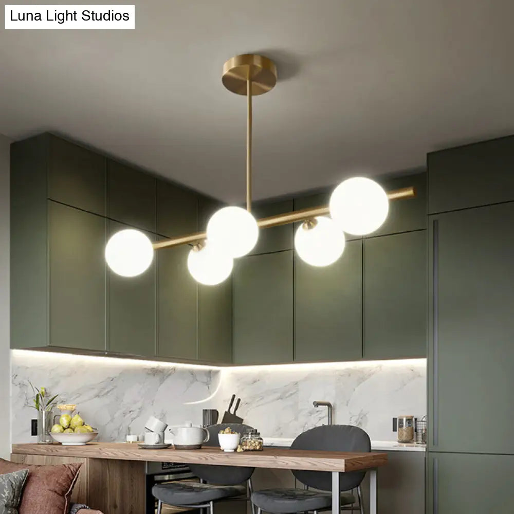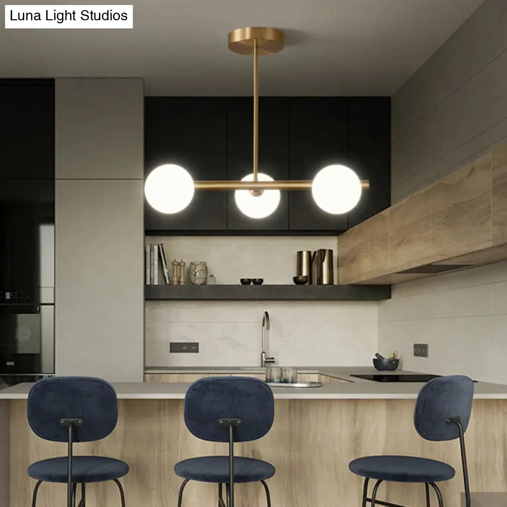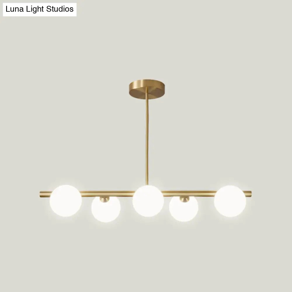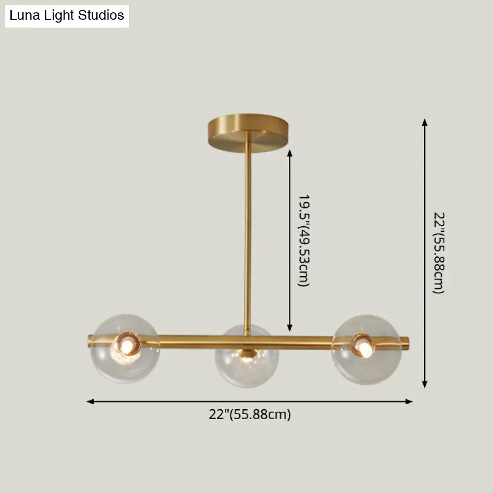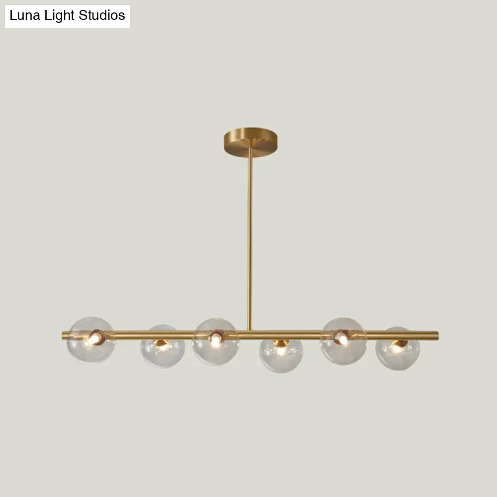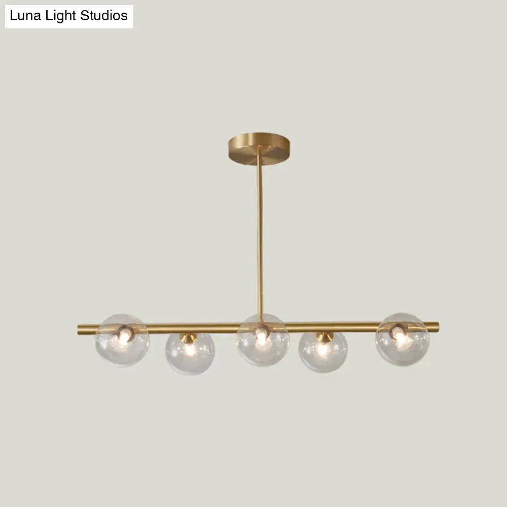 DecorBites™ Gold Linear Island Pendant Light with Spherical Glass Shade - Perfect for Dining Table and Minimalist Decor
