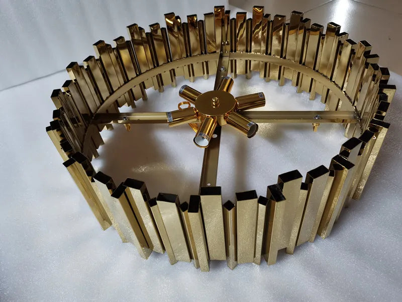 Introducing the Decorbites Gold Metal Crystal Chandelier Pendant, a stunning addition to your home decor that exudes elegance and sophistication. This modern-style chandelier features a striking design with clear glass shades and a luxurious gold metal finish.