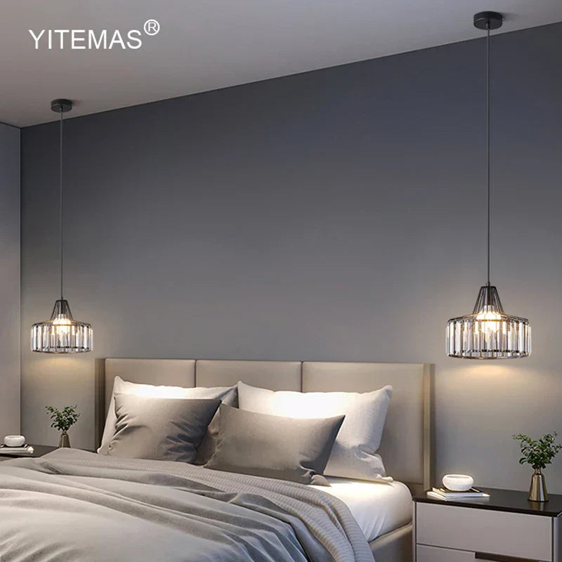 DecorBites™ Gold Mini Crystal Pendant Chandelier for Bedroom, Kitchen Island, Hallway - Small Black E27 Lamp