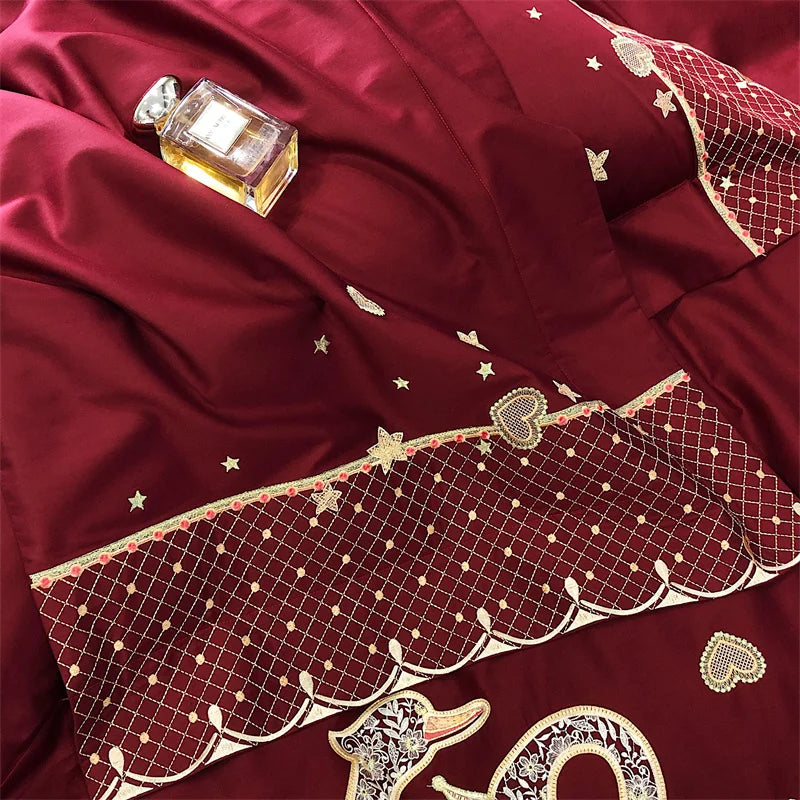 Indulge in the luxurious comfort of the Decorbites Gold Swan Love Wedding Bedding Set, crafted with the finest Egyptian cotton for a truly exquisite sleeping experience.
