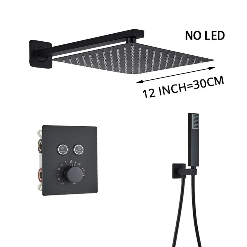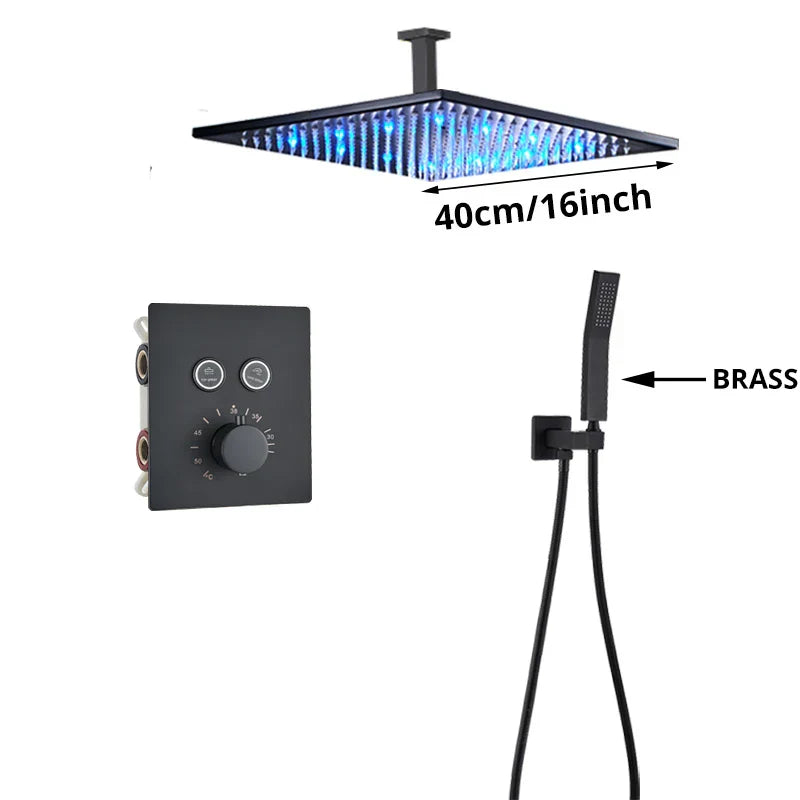 DecorBites™ Gold Thermostatic Rainfall Shower Faucet Mixer Set for Bathroom with Ceiling Wall Mount