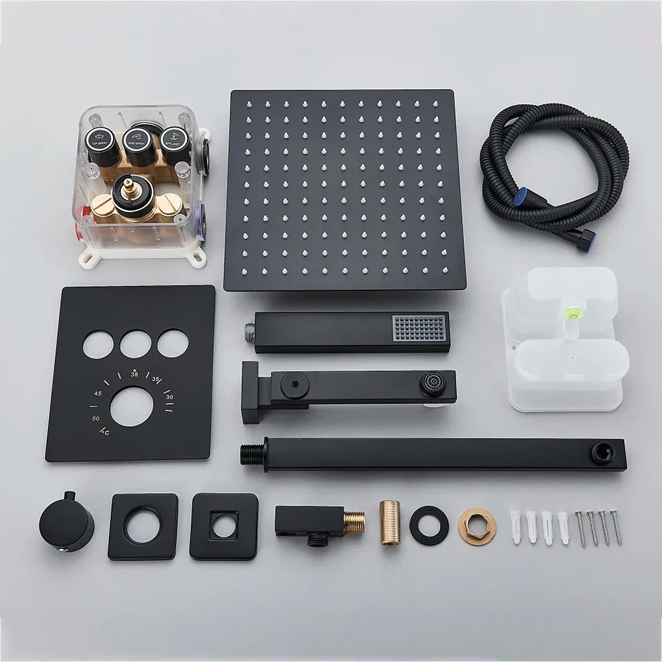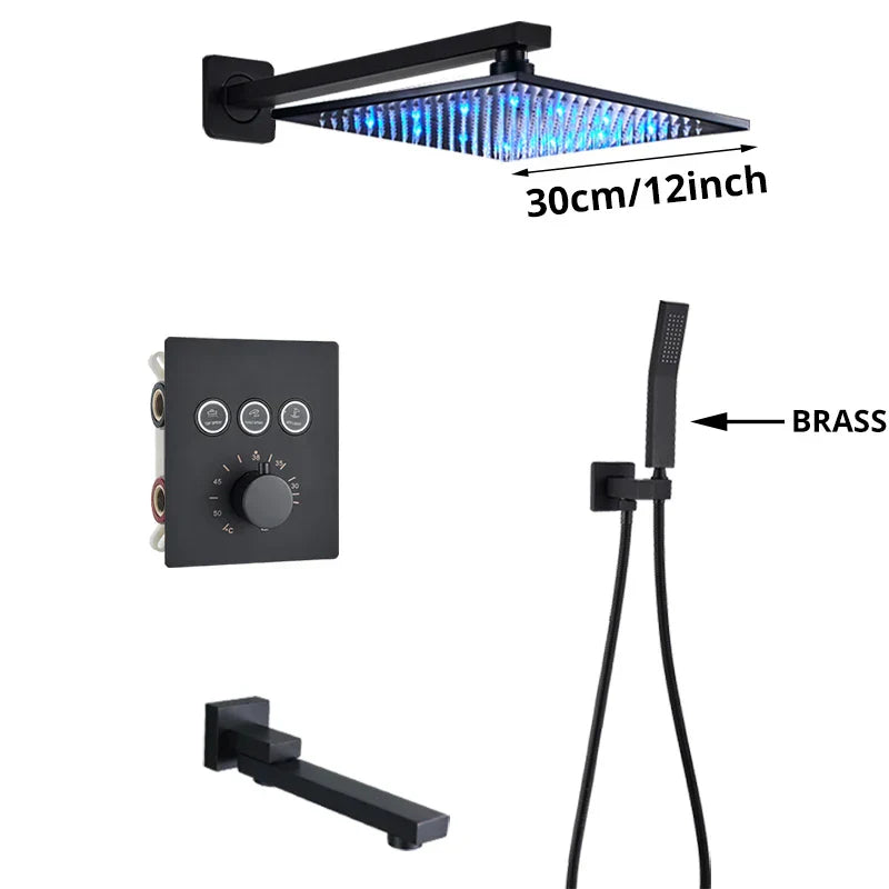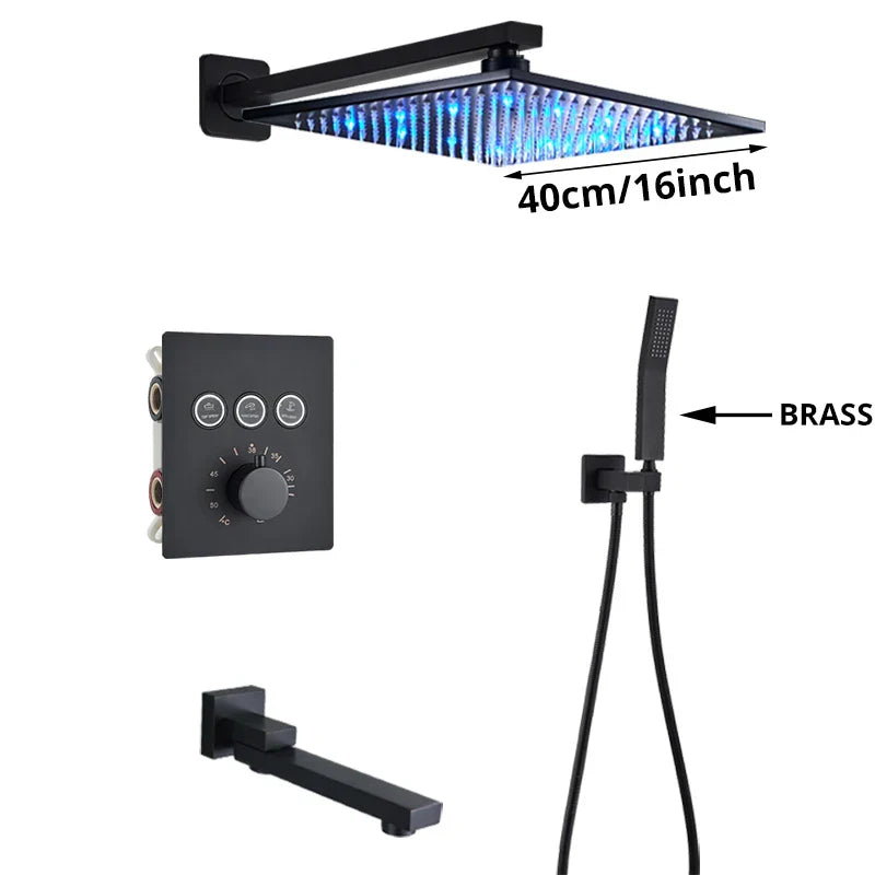 Indulge in the luxurious experience of the Decorbites Gold Thermostatic Rainfall Shower Faucet Mixer Set for your bathroom. This exquisite shower set boasts a sleek and contemporary design, perfect for elevating the style of your space. Crafted with high-quality brass and featuring a stunning blackened finish, this shower faucet mixer set exudes elegance and sophistication.