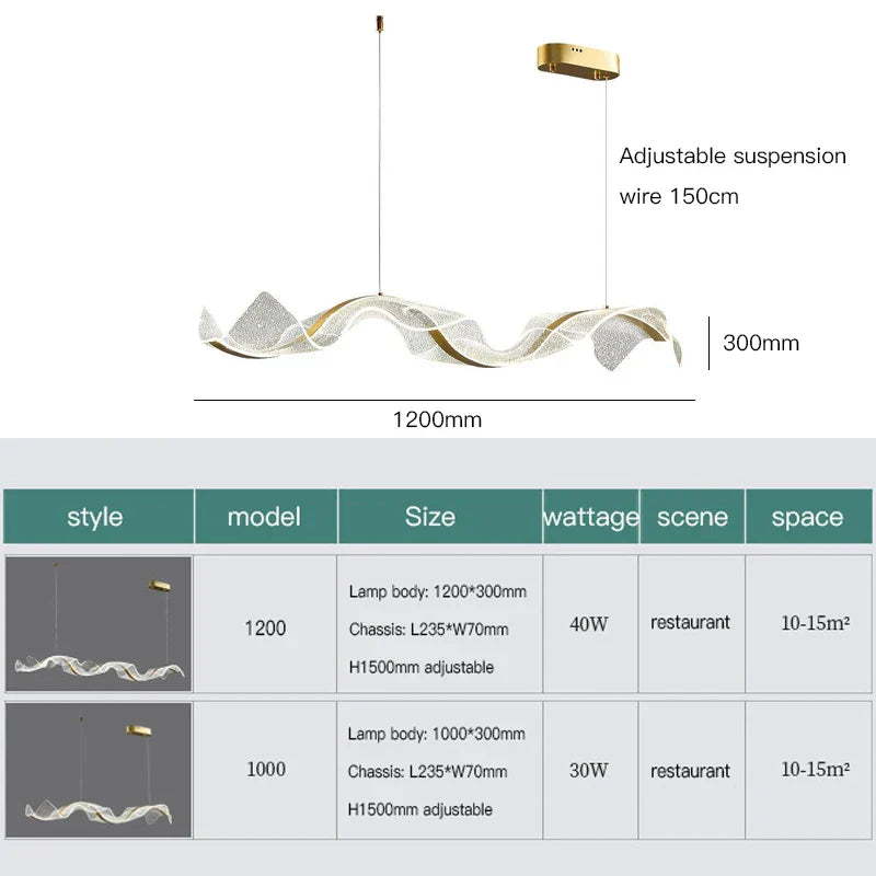 Designed to enhance the décor of your space, this pendant light features a beautiful gold wave design that adds a touch of luxury to any room. The acrylic material is high-quality and durable, ensuring long-lasting beauty and functionality.