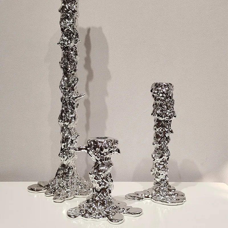 Illuminate your surroundings in style with this exquisite candlestick holder. Its melt shape design adds a modern twist to the classic concept, making it a unique and striking accent piece. Perfect for special occasions or everyday use, this candlestick holder is sure to become a beloved fixture in your home.