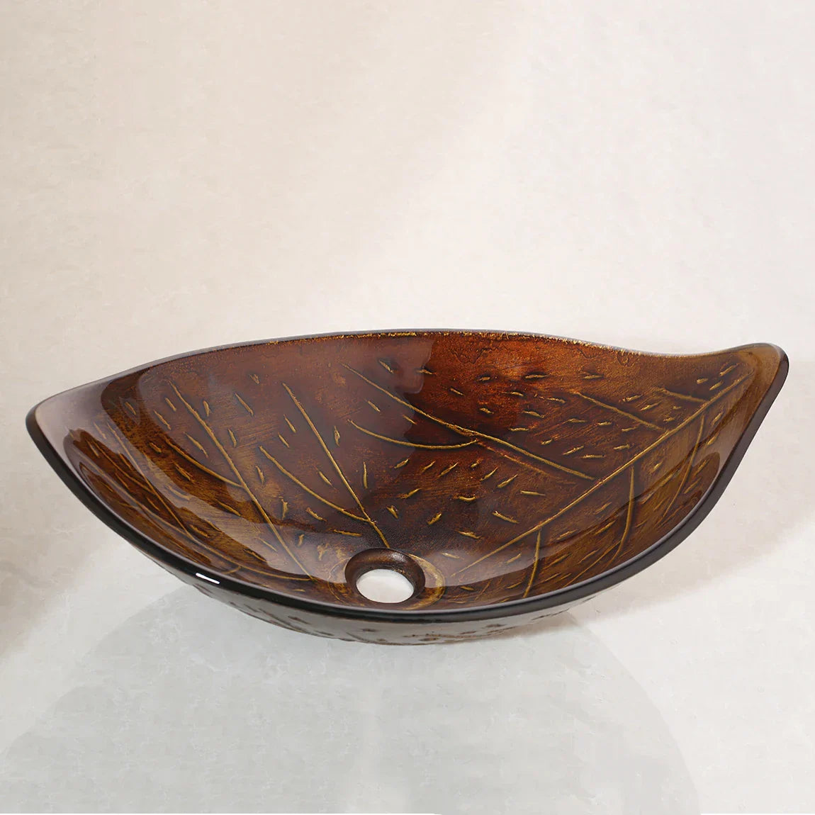 DecorBites™ Golden Leaf Vessel Glass Sink Set with Chrome Faucet