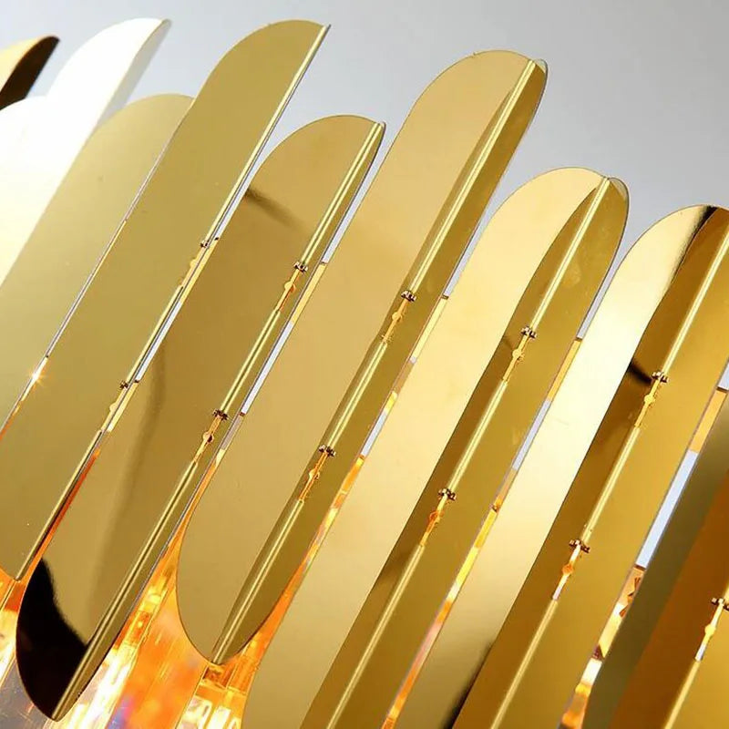 Crafted with precision and attention to detail, this exquisite ceiling light is made with high-quality materials such as gold stainless steel and crystal, providing a luxurious feel to any room. The polished steel finish and plated technics enhance the overall aesthetic, creating a truly eye-catching centerpiece.