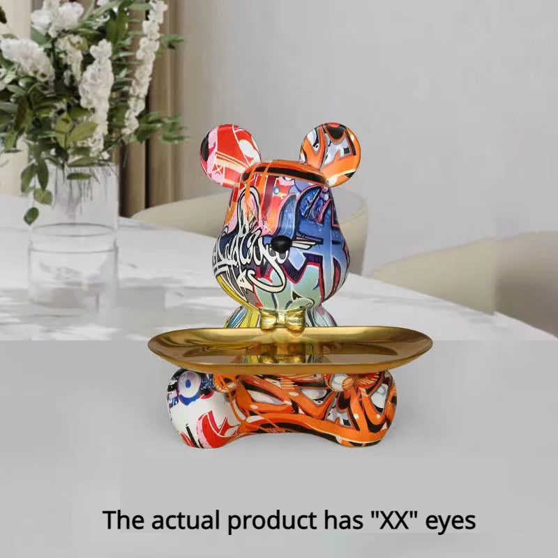 DecorBites™ Graffiti Bear Figurine | Modern Home Decor Statue | Keys Storage Shelf Sculpture