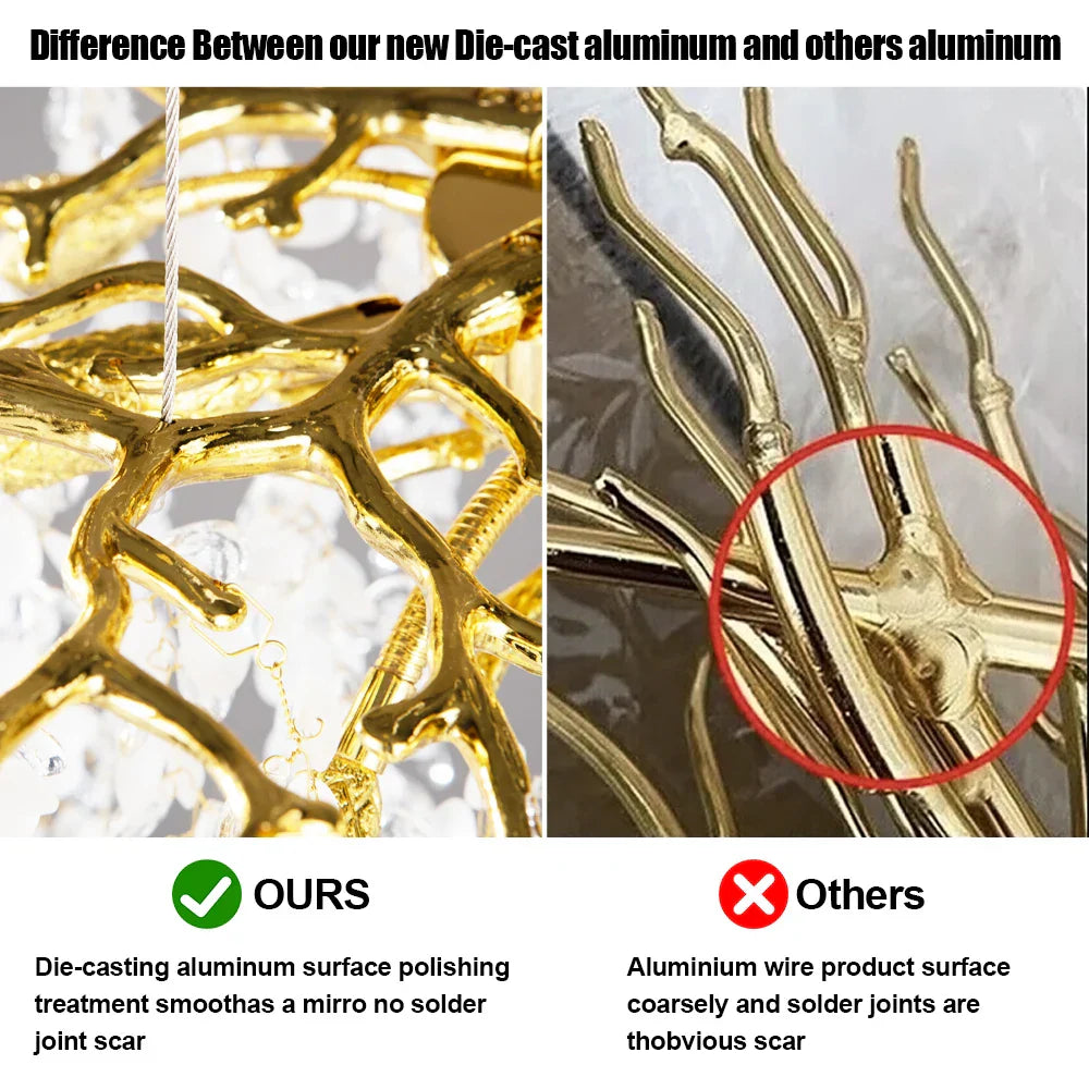 DecorBites™ Grape Crystal Chandelier Silver Gold LED Tree Branch Luxury Lighting