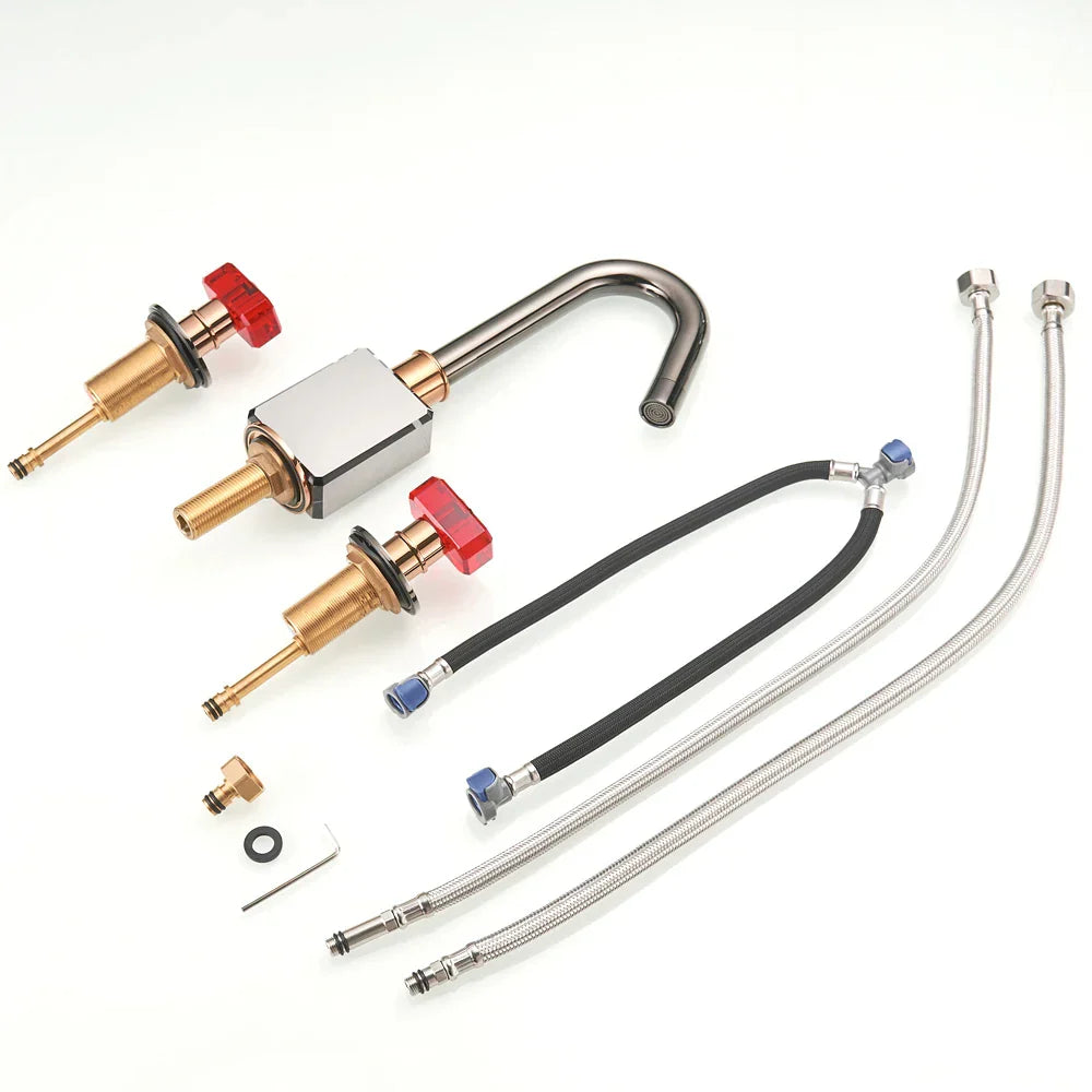 Crafted with high-quality brass materials, the Decorbites Basin Faucets feature a sleek gray surface treatment that adds a touch of sophistication to your space. The dual-handle design allows for easy adjustment of both hot and cold water, providing ultimate convenience and comfort.