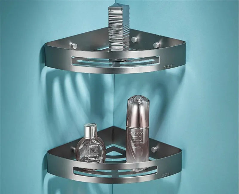 DecorBites™ Grey Bathroom Accessories Set: Paper Holder, Corner Shelf, Towel Rack, Toilet Brush Holder, Towel Holder