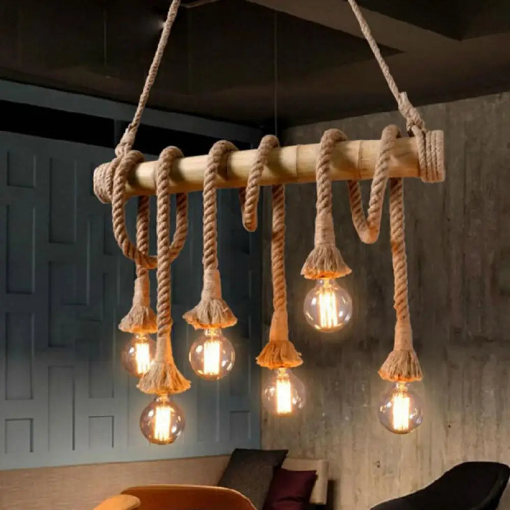 DecorBites™ Hemp Rope Pendant Lamp - Industrial Style Beige - Linear over Island Lighting