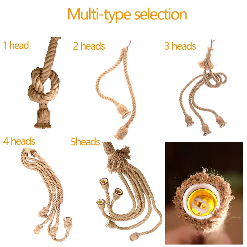 DecorBites™ Hemp Rope Pendant Light Holder, Industrial Loft Personality Edison Lamp