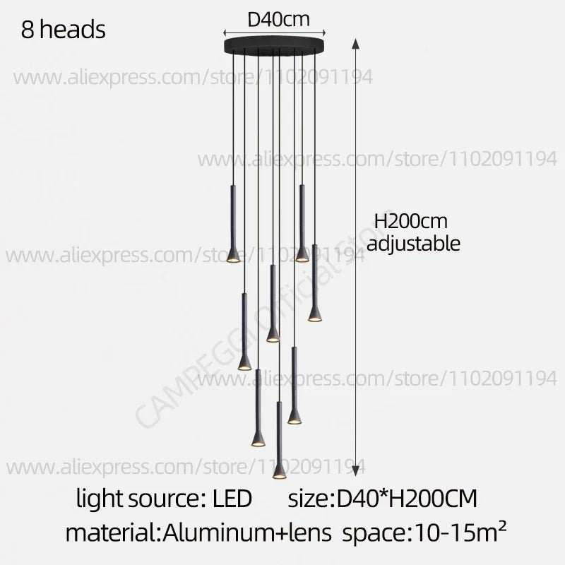 The Decorbites Horn-Shaped Nordic Pendant Lamp features a sleek aluminum construction with a painted finish, adding a touch of elegance to your decor. With eight light sources, it provides ample lighting coverage for an area of 15-30 square meters.