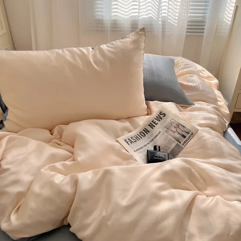 DecorBites™ Ice Silky Solid Bedding Set - Cooling Satin Smooth Quilt Cover Set