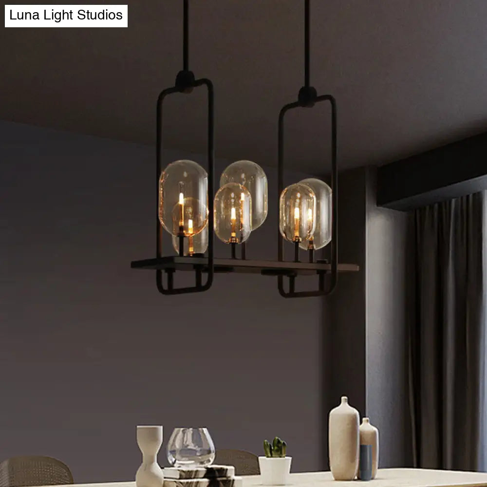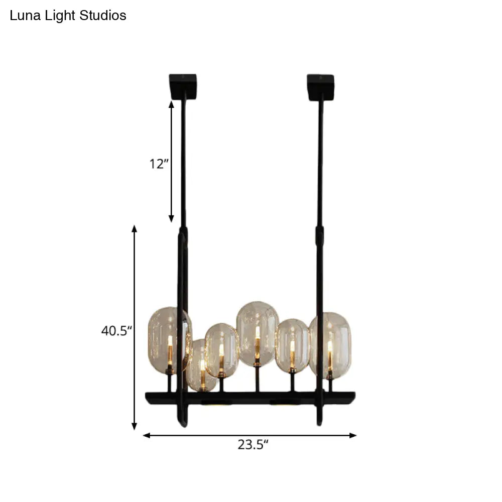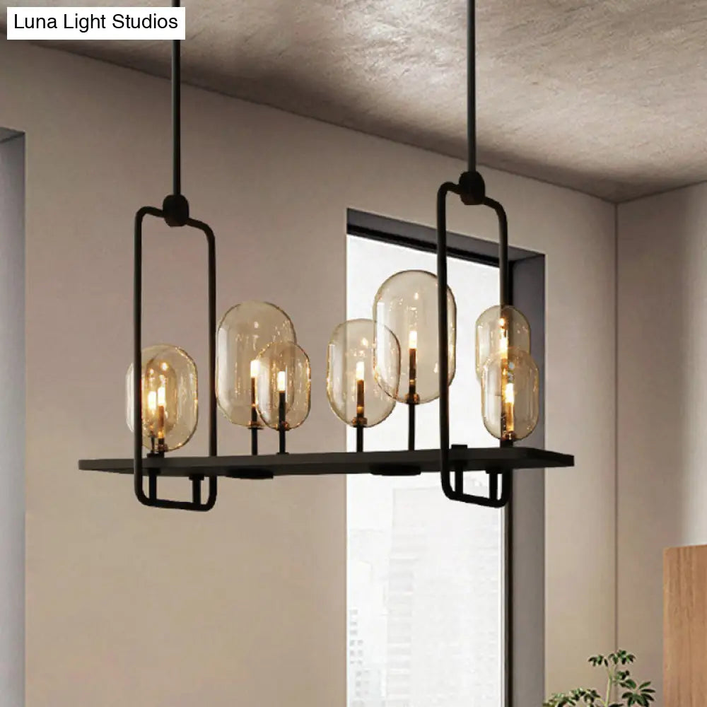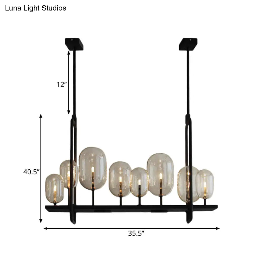 DecorBites™ Industrial Amber Glass Hanging Light Fixture - Capsule Restaurant Island Lighting (6/8 Bulbs, Black)