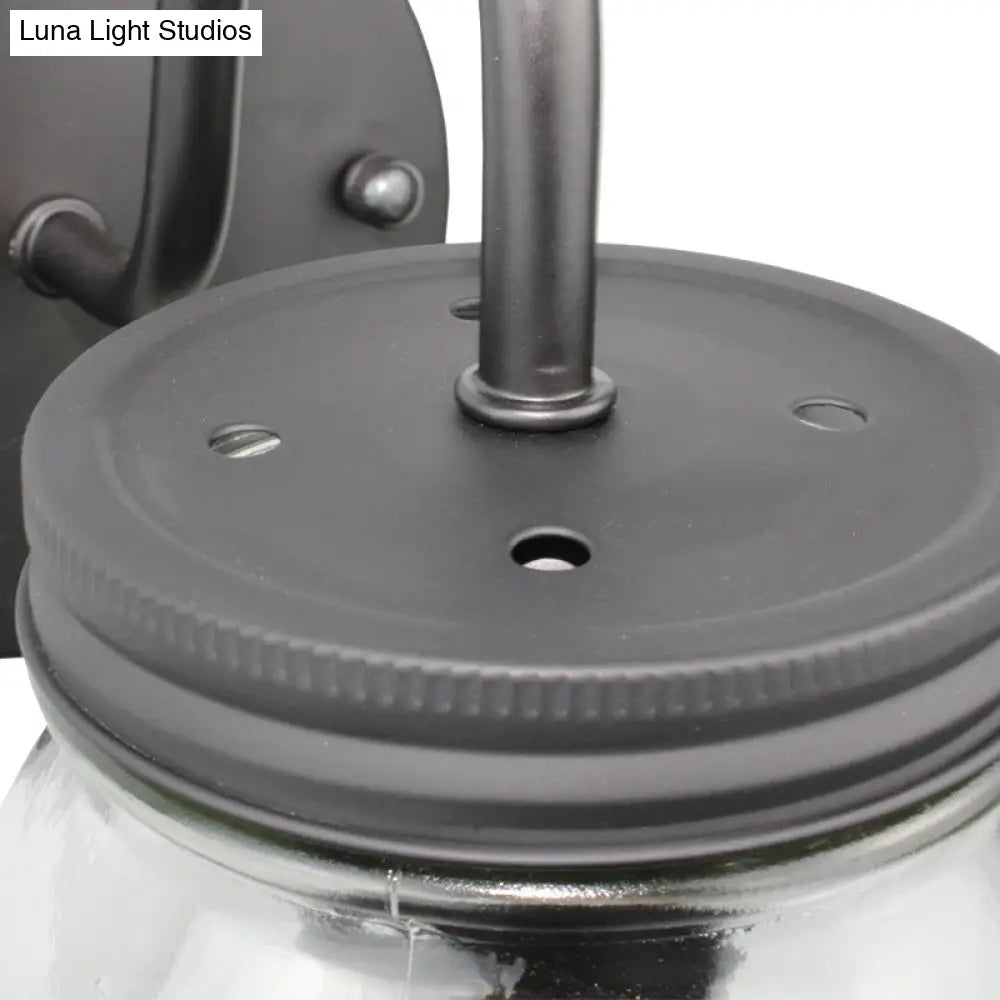 DecorBites™ Industrial Clear Glass Wall Sconce with Black Jar Shade: Modern Bedroom Light Fixture with Floral Detail