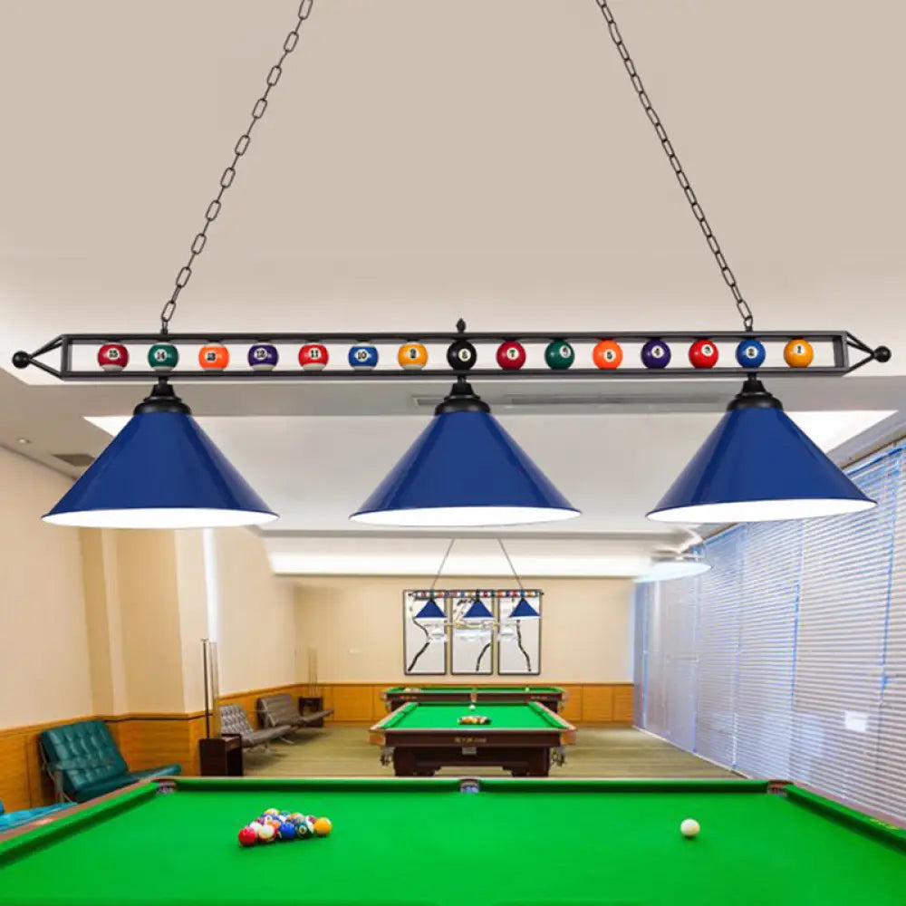 DecorBites™ Industrial Conical Metal Billiard Lamp with Country Club Island Light & Rolled Edge