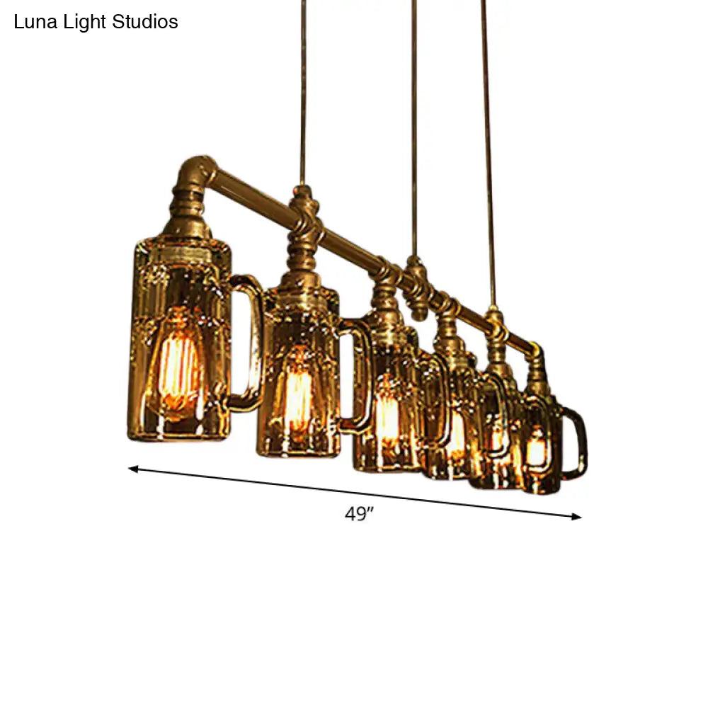 DecorBites™ Industrial Hanging Beer Mug Bar Light with Clear Glass and 6 Gold Bulbs