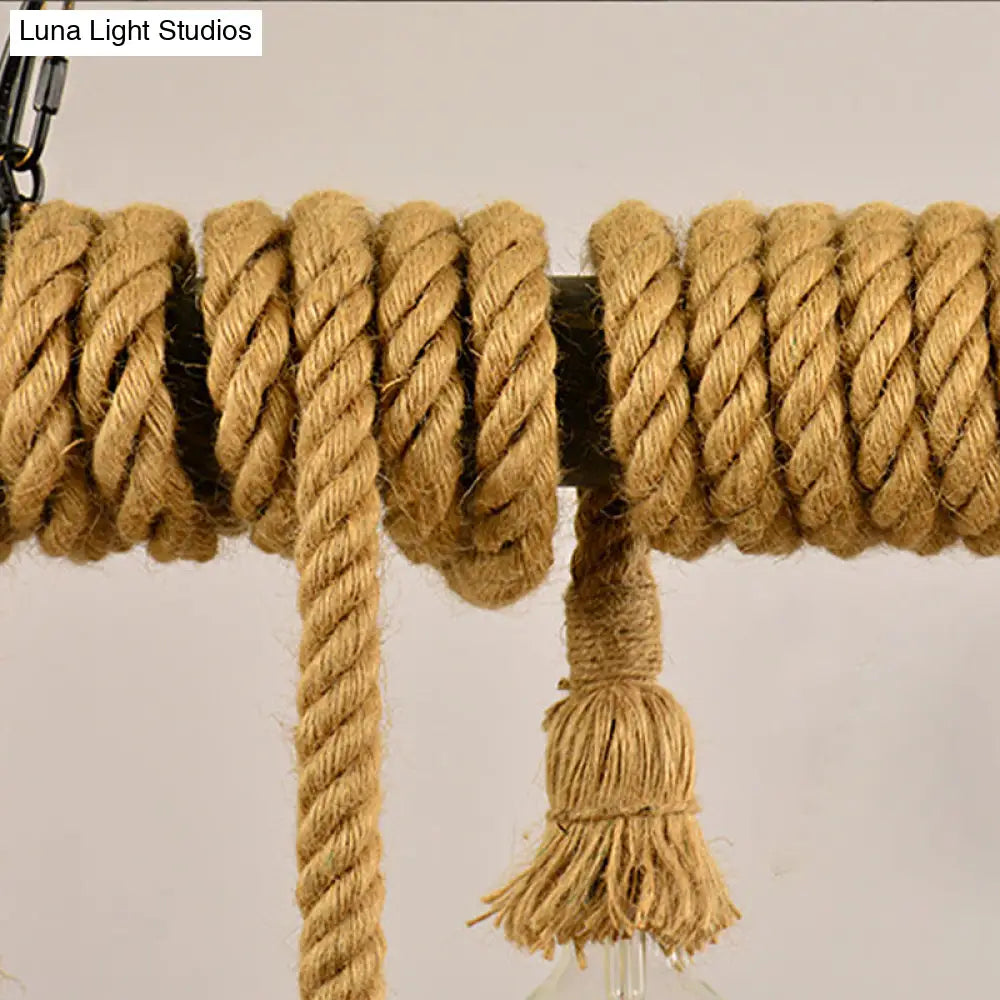 DecorBites™ Industrial Style Island Lamp with Rope and 4 Lights - Open Bulb Hanging Light for Dining Room in Beige