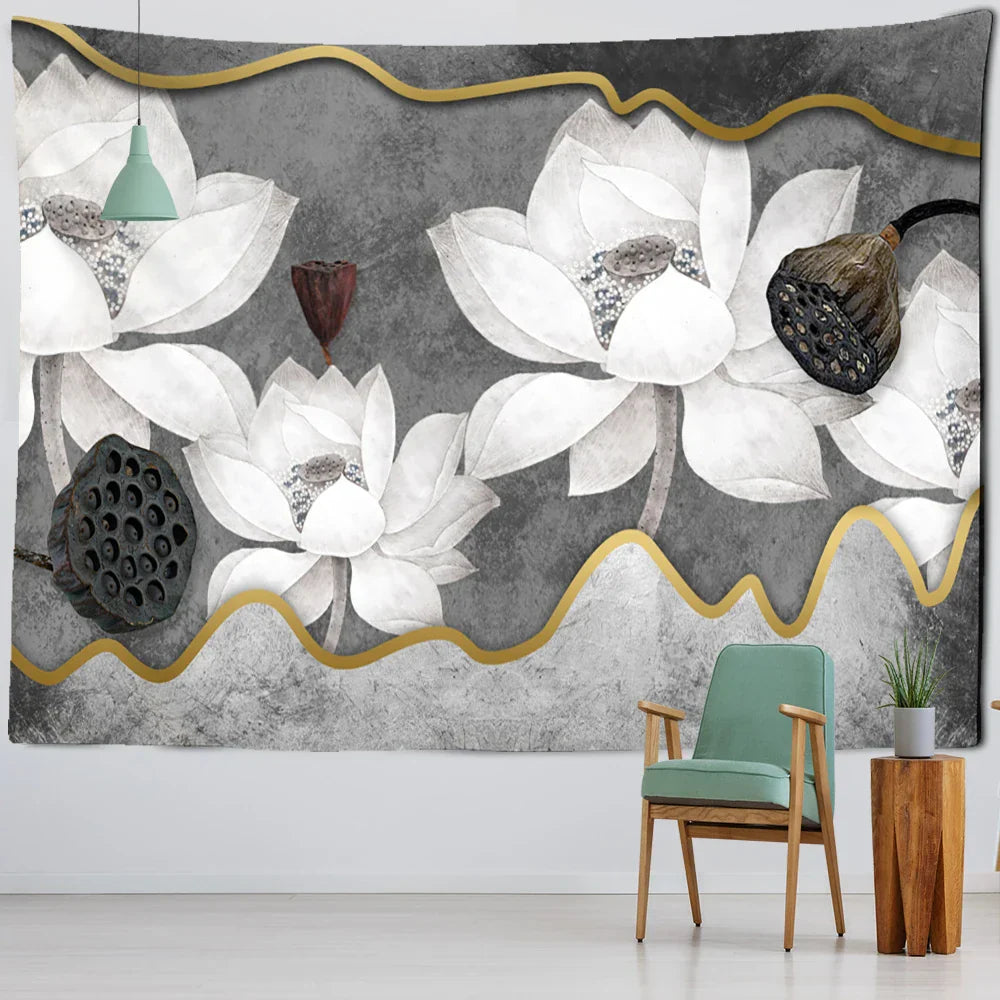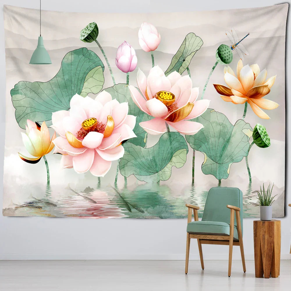 DecorBites™ Ink Lotus Koi Tapestry: Boho Aesthetic Psychedelic Room Art Hippie Decor