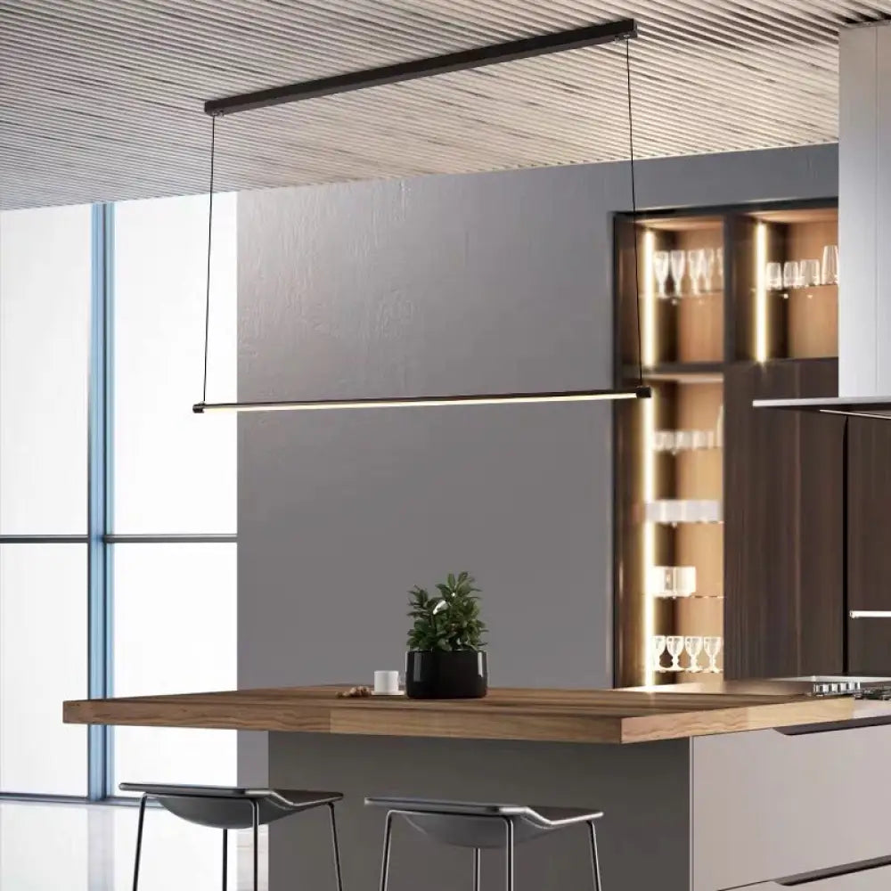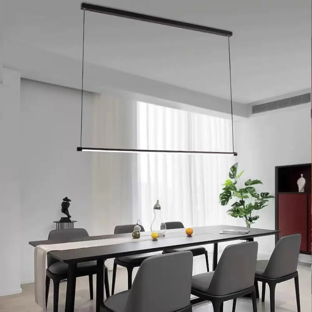 DecorBites™ Island Lighting: Ultra Slim Tube LED Office Hanging Lamp in Black - Modern Metal Design, Multiple Light Options