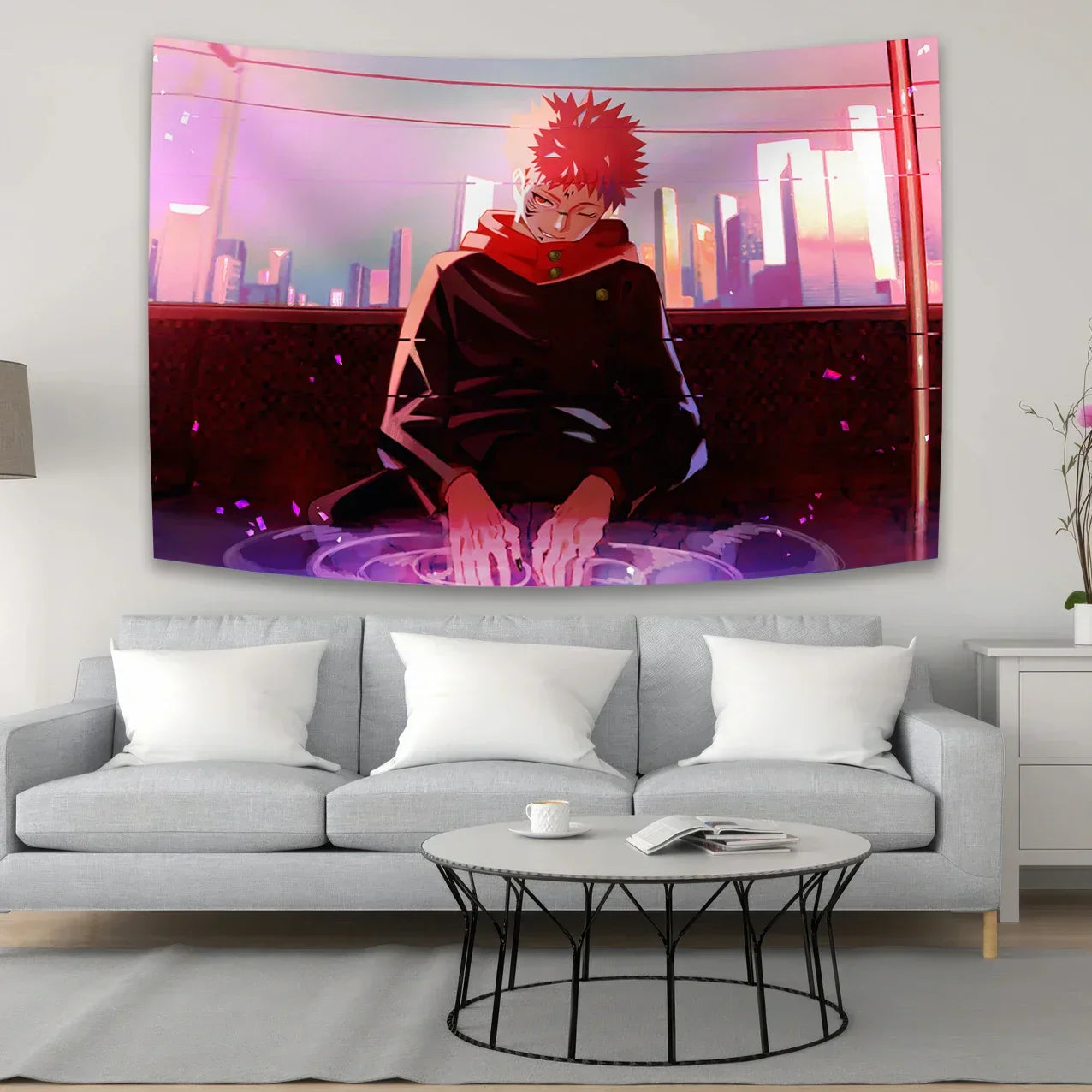 Transform your room into a cozy haven with the mesmerizing design of this tapestry. The intricate details and vibrant colors of the Jujutsu Kaisen Anime bring life to any space, creating a captivating focal point that is sure to impress. Whether you are a fan of the anime series or simply appreciate beautiful artwork, this tapestry is a must-have for your home decor collection.
