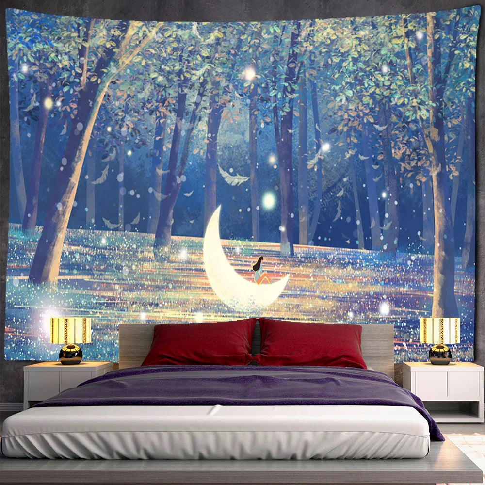 With a woven technic and intricate details, this tapestry is not just a piece of wall decor, but a work of art that will elevate the aesthetic of your space. Perfect for creating a cozy and inviting atmosphere, this tapestry is ideal for those who appreciate the beauty of nature and the magic of the unknown.
