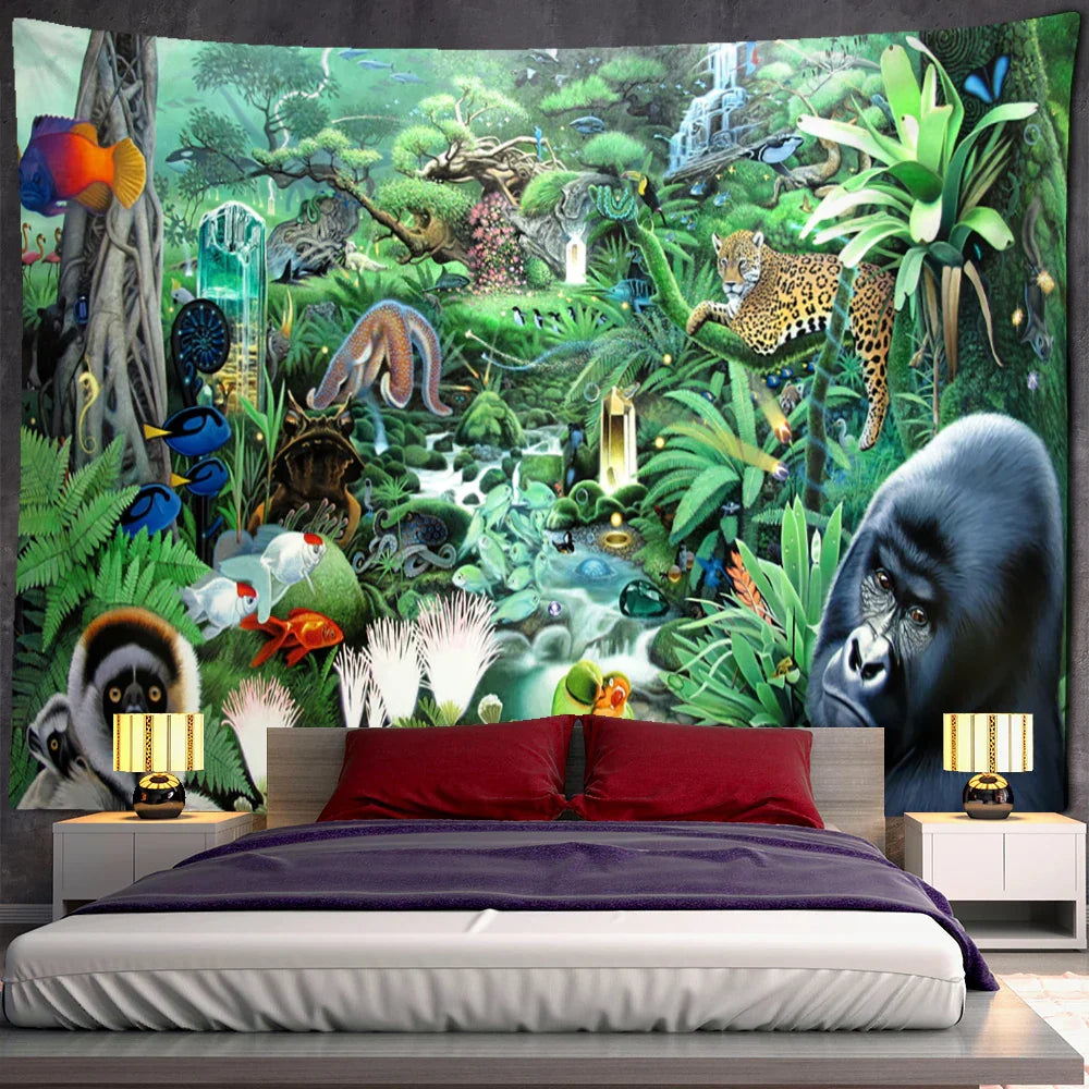 DecorBites™ Jungle Animal Tapestry Wall Hanging: Bohemian Style Home Decor & Children's Room Art