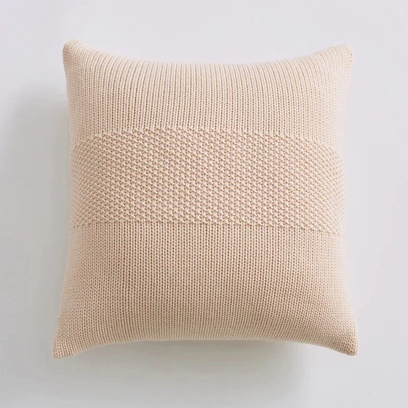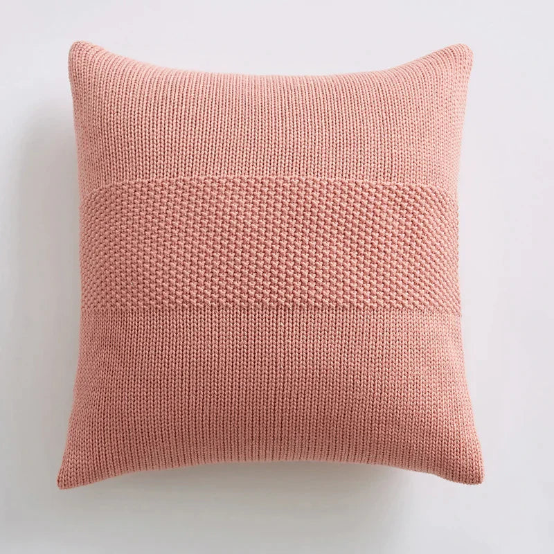DecorBites™ Knit Cushion Cover 45x45cm Solid Cotton Pillow Pink Ivory Grey Cream