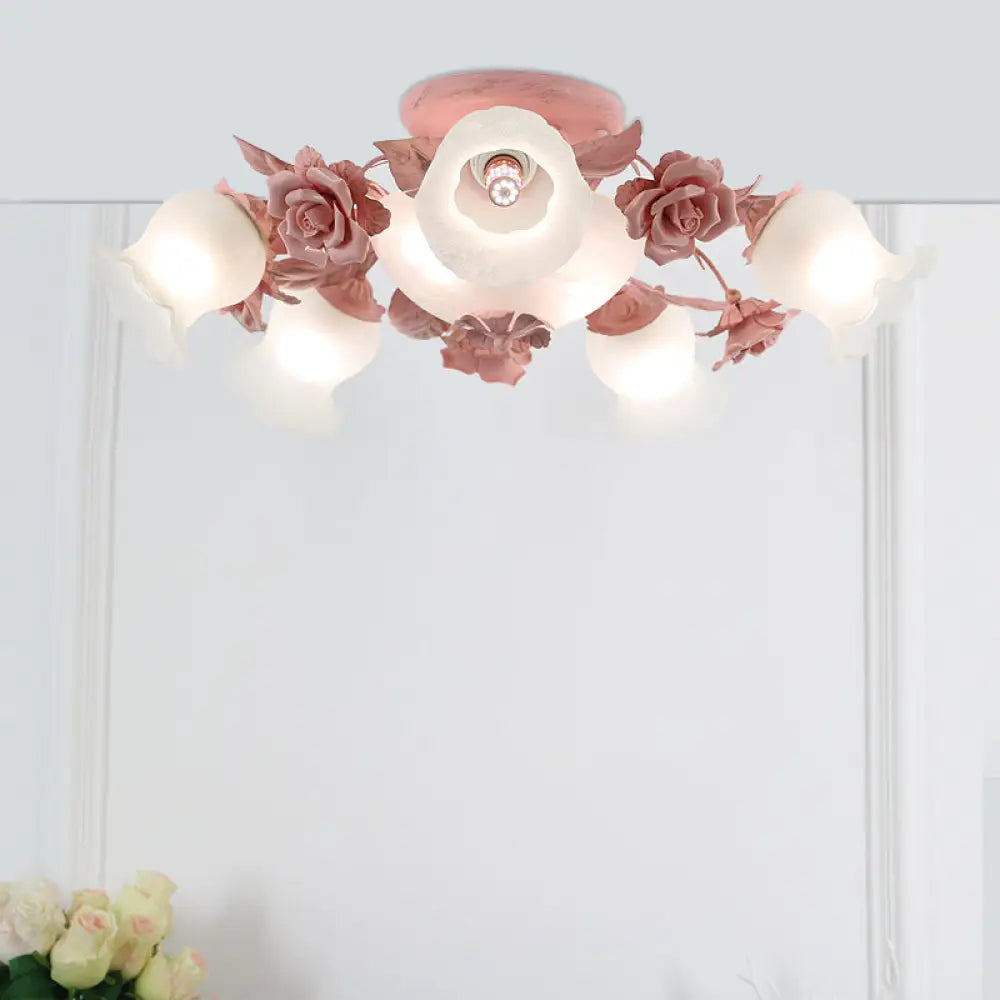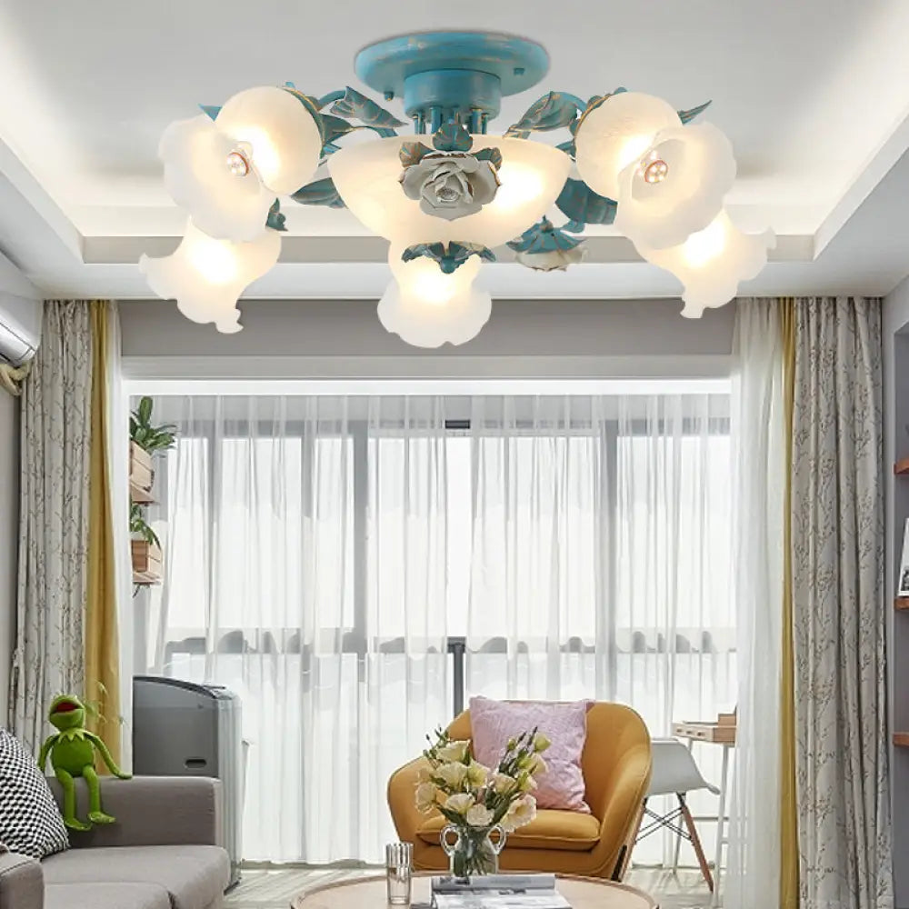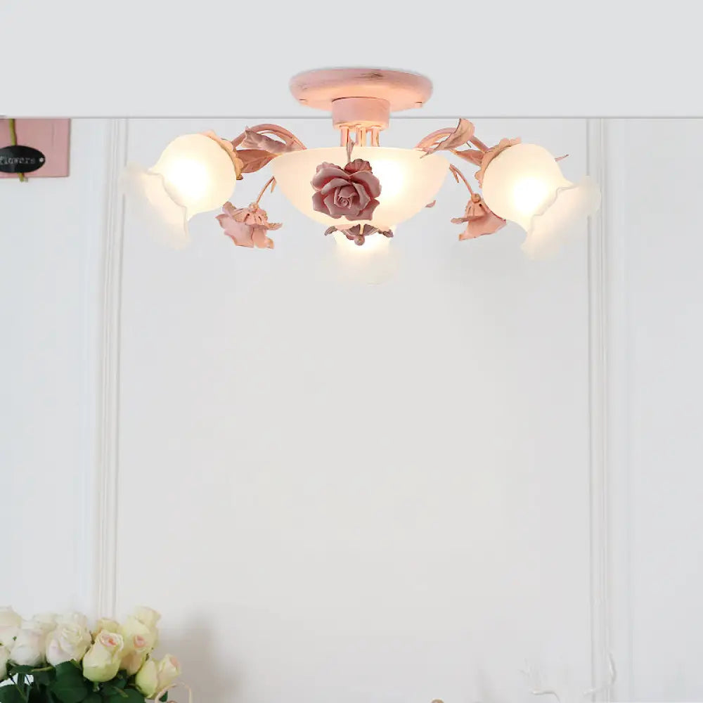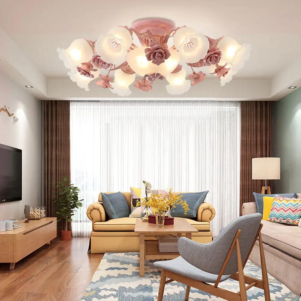 DecorBites™ Korean Garden Flower Frost Glass Ceiling Mounted Light for Bedroom