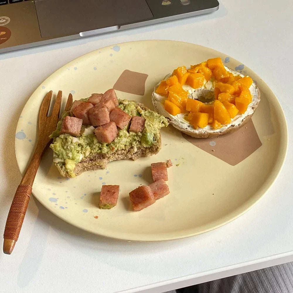DecorBites™ Korean Style Round Bamboo Fiber Dining Plate for Desserts, Fruits, and Cakes