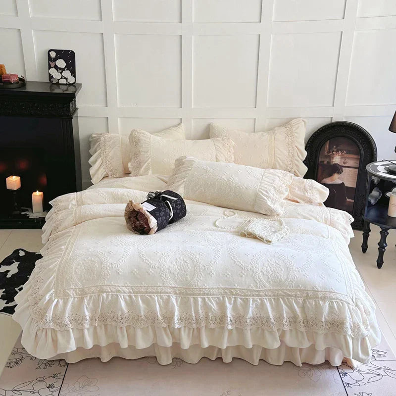 DecorBites™ Lace Ruffles Velvet Wedding Bedding Set with Carved Details