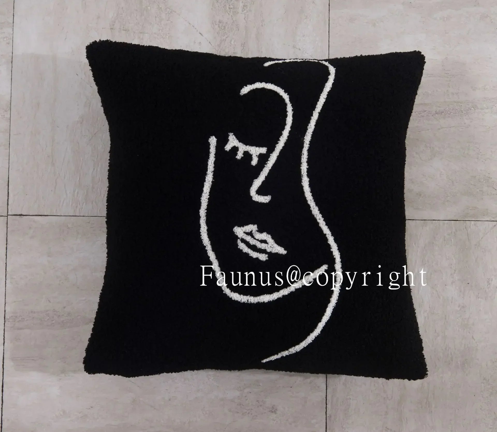 DecorBites™ Lambswool Face Cushion Cover 45x45 Beige White Abstract Art Pillowcase