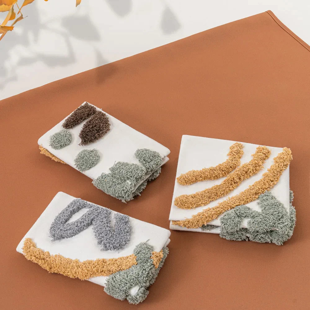Introducing the Leaf Embroidered Boho Tufted Cotton Canvas Cushion Cover, a perfect blend of modern minimalism, Nordic charm, and bohemian flair for your living space.