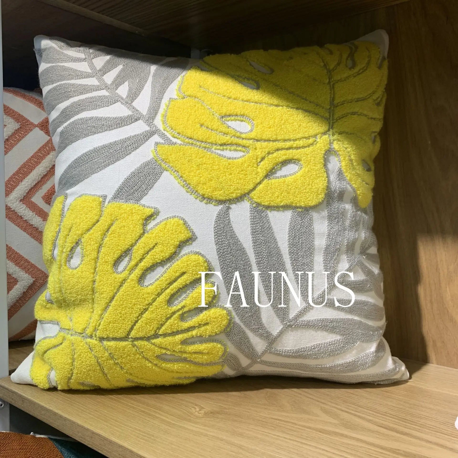 DecorBites™ Leaf Embroidered Cotton Cushion Cover Set - Home Decor Pillow Covers 45x45