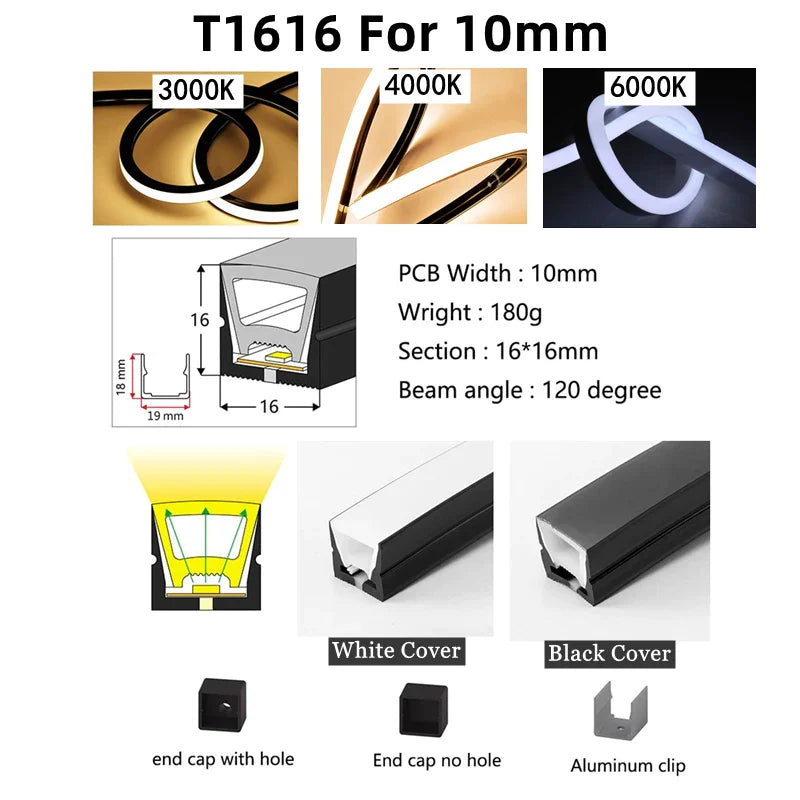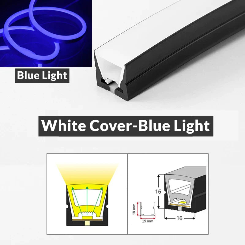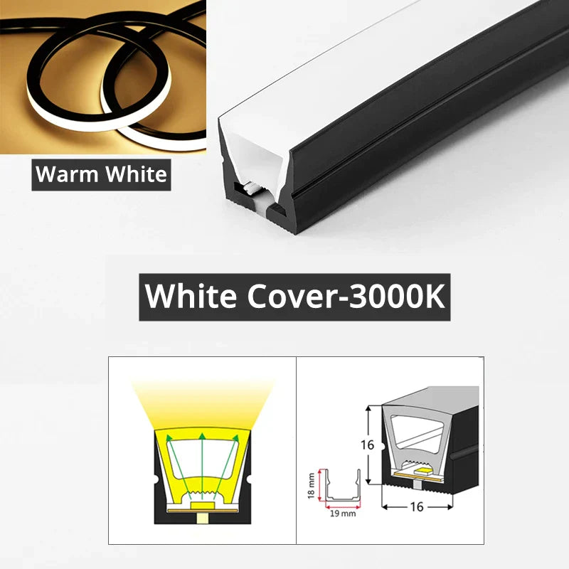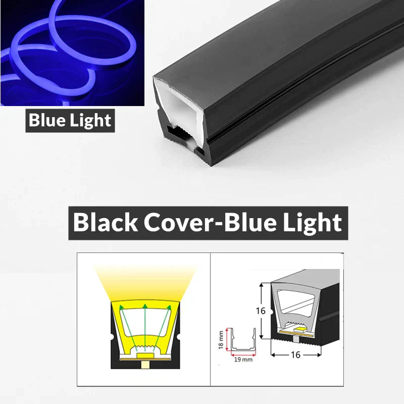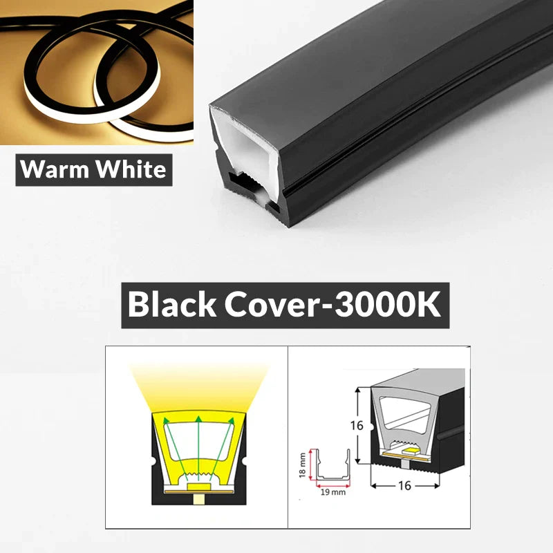 Available in warm white, cold white, red, green, and blue, you can choose the perfect hue to suit your style. Whether you need a 1m accent or a 5m statement piece, these lights come in various lengths to meet your needs. The soft silicone strip is housed in a black housing with a milky cover, creating a sophisticated and seamless look.