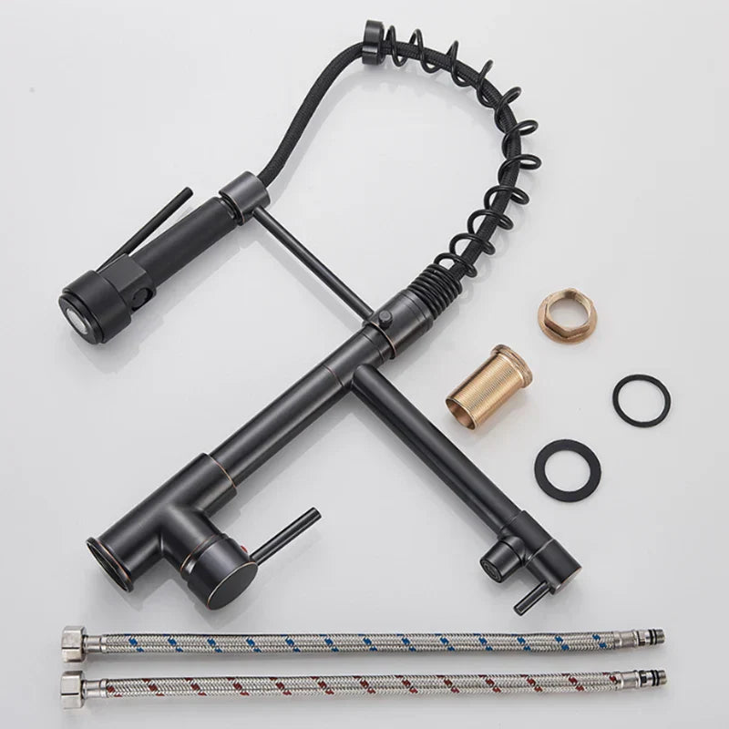 The Decorbites LED Spring Kitchen Faucet features a contemporary style with a polished surface treatment, perfect for modern kitchens. The dual swivel spout and spring design add a unique touch to your space, while the available finishes in black, chrome, brushed, or gold allow you to customize the look to suit your taste.