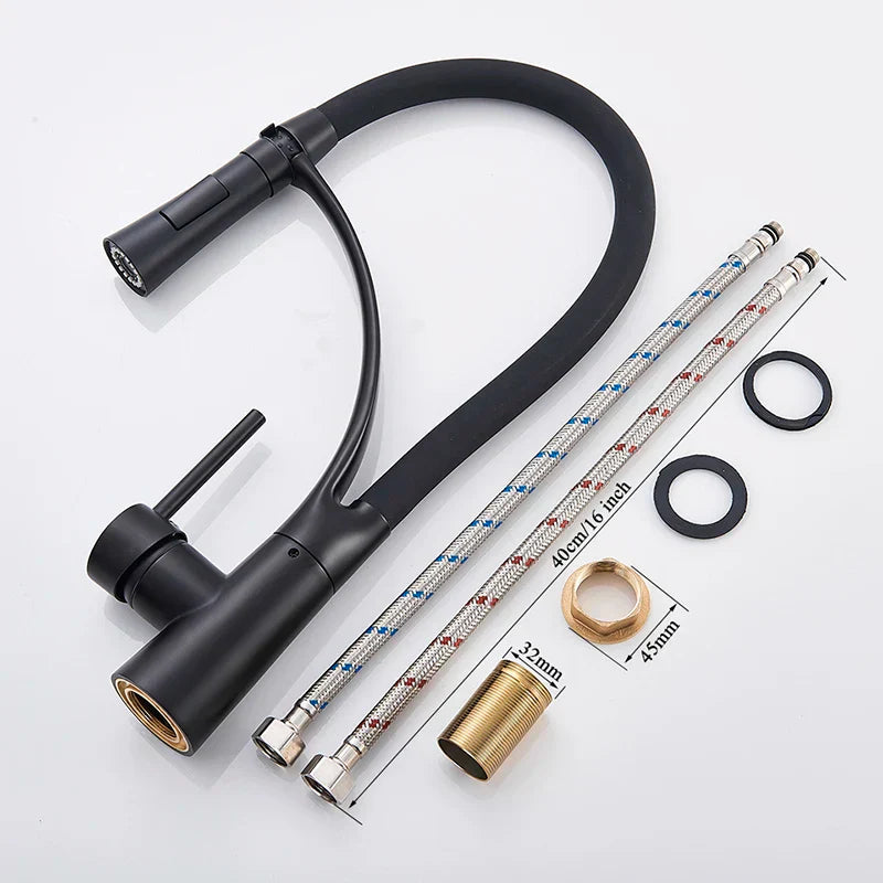 The Decorbites LED Swivel Pull Down Kitchen Faucet features a flexible spout type and a single lever for easy control of water temperature and flow. The pull-out spray type and 360-degree rotation function provide versatility and convenience, allowing you to easily clean dishes and sink areas with precision.