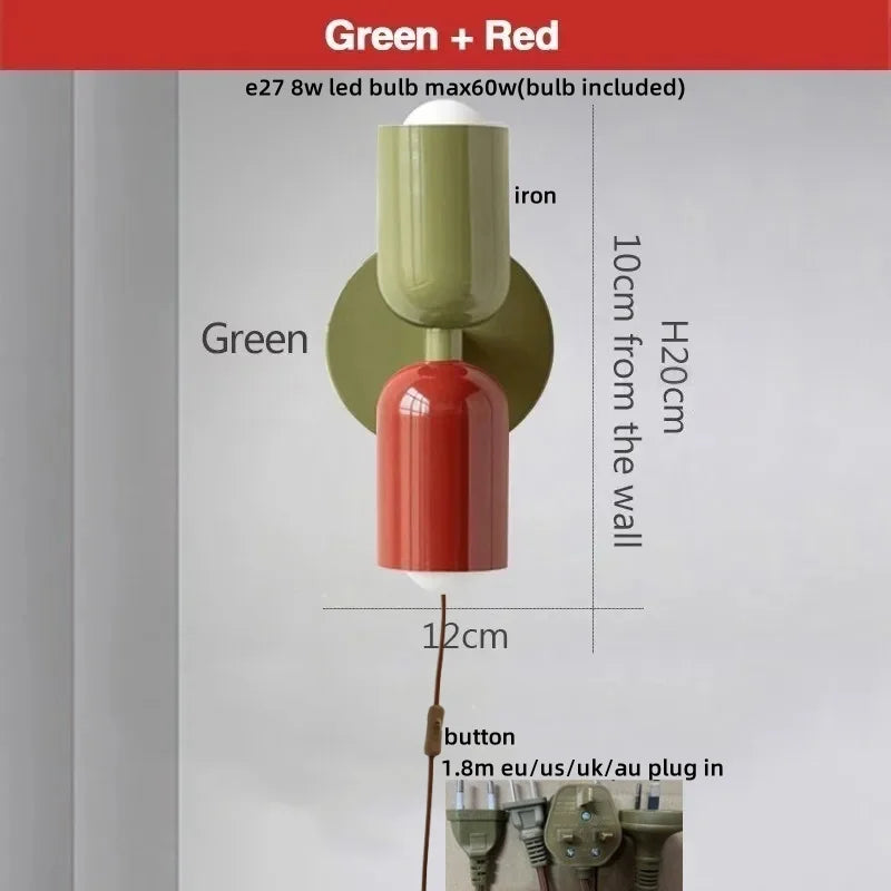 DecorBites™ LED Wall Lights Colorful Iron Double Heads Modern Bedside Lamp