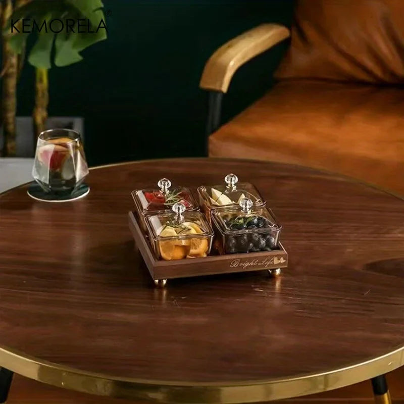 DecorBites™ Light Luxury Glass Fruit Plate with Bamboo Wood Compartment