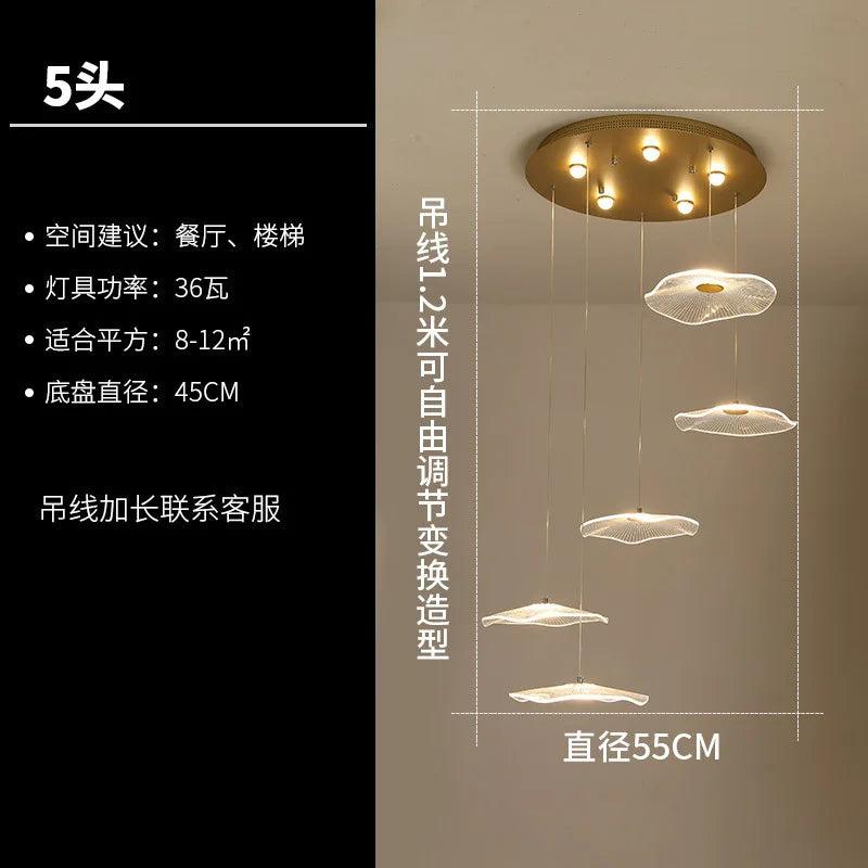 DecorBites™ Lotus Leaf Chandelier: Modern Luxury Acrylic LED Hanging Lamp for Villa, Hotel, Living Room