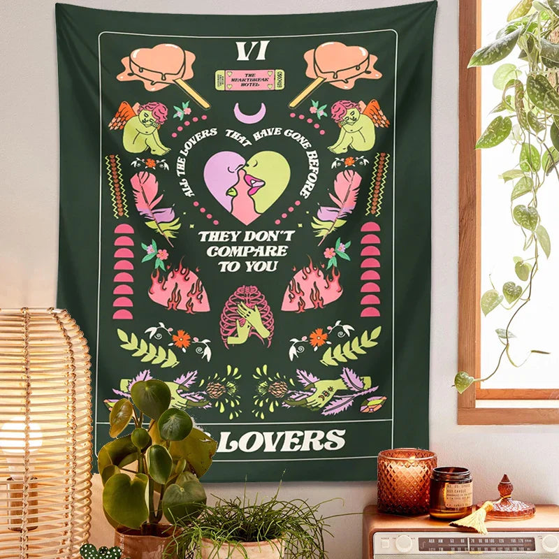 DecorBites™ Lovers Tapestry: Tarot Card Astrology Snake Moon Psychedelic Wall Hanging