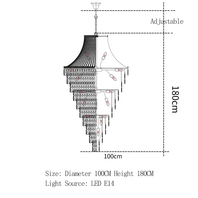 Crafted with high-quality crystal materials and finished with plated iron details, this modern-style chandelier exudes a sense of opulence and grandeur. The chain pendant installation type allows for a seamless integration into your space, while the knob switch offers ease of use and customization with its dimmable feature.