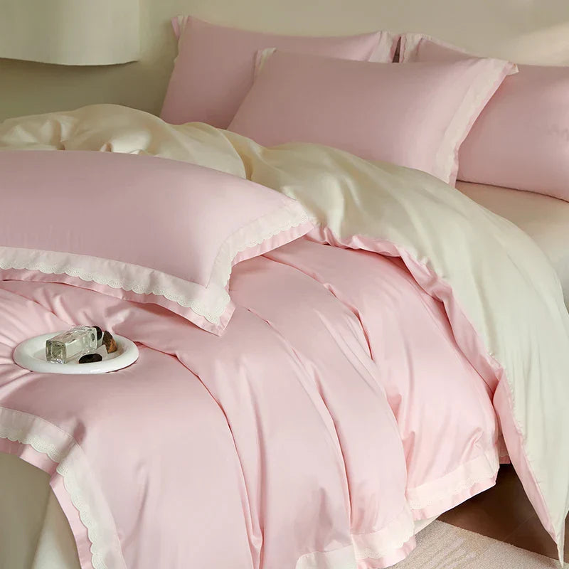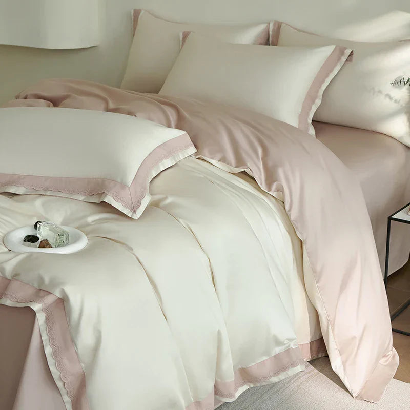 DecorBites™ Luxe Lace Bedding Set: 1000TC Egyptian Cotton Duvet, Sheet, Pillowcases