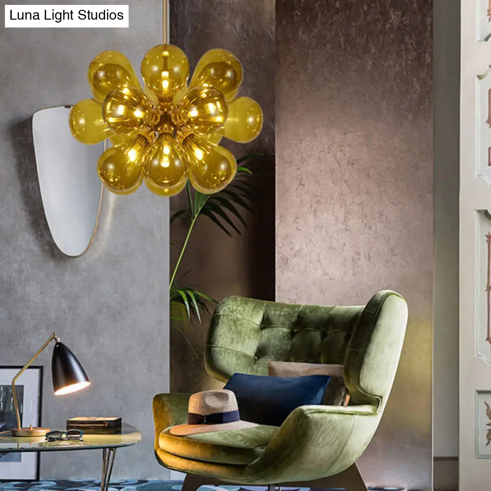 DecorBites™ Modern Cognac Glass Bubble Chandelier - 18-Head Hanging Ceiling Light Fixture