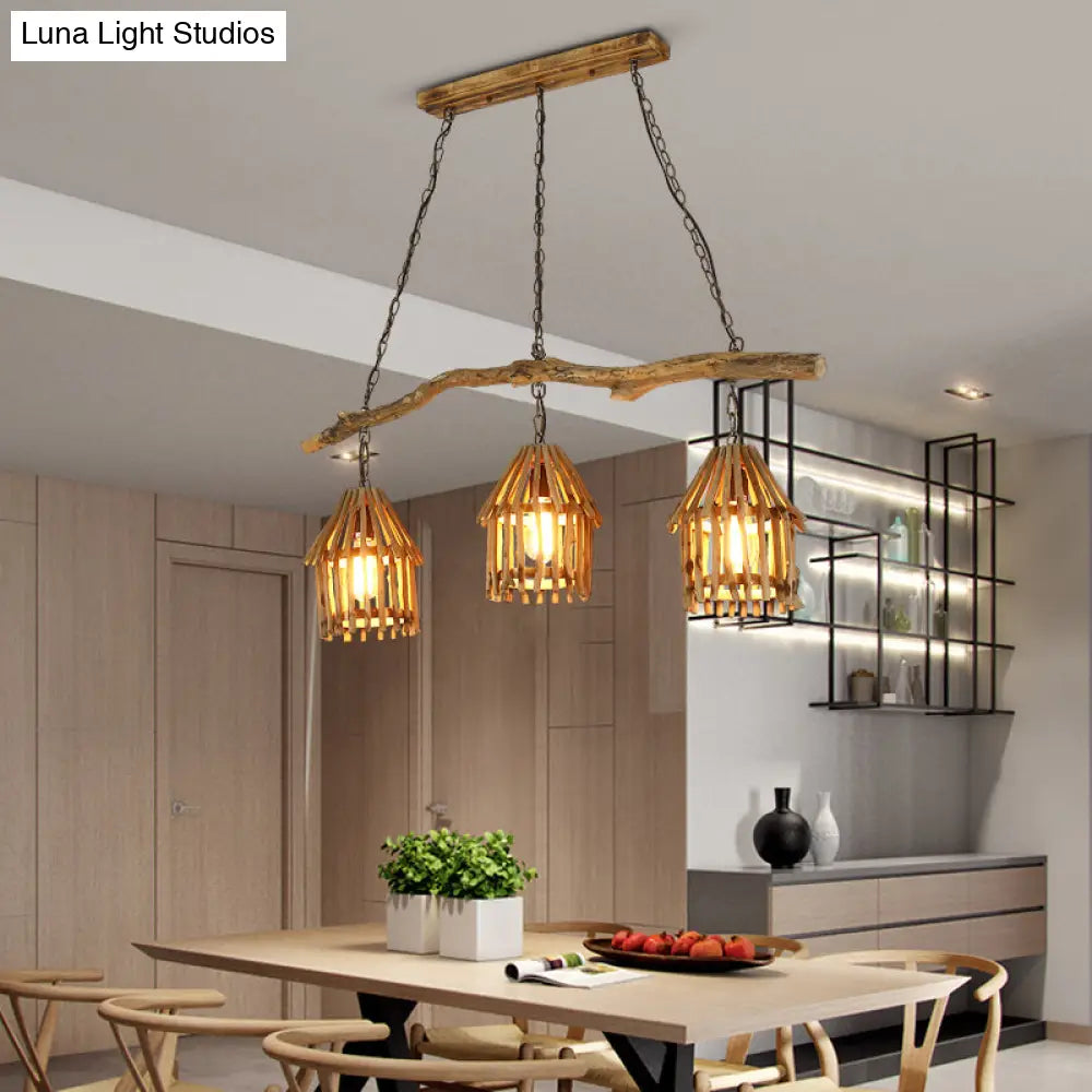 DecorBites™ Nordic Style Wooden House Pendant Light with 3 Heads - Ideal for Dining Room